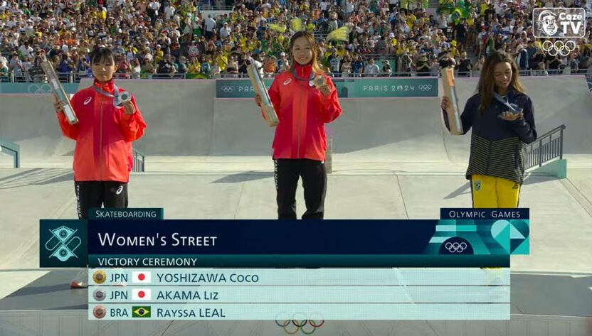 Rayssa Leal chegou ao terceiro lugar no pódio pela última manobra na competição. O ouro e a prata ficaram com o Japão. Ela viralizou ao declarar, em LIBRAS, a frase “Jesus é o caminho, a verdade e a vida”.
